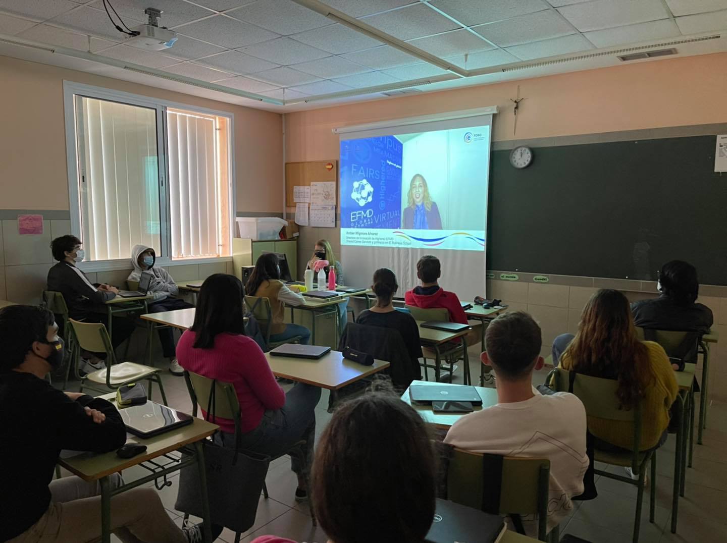 El pasado viernes día 12 de febrero, los alumnos de bachillerato de nuestro colegio, asistieron a una videoconferencia sobre “Las profesiones y competencias del futuro más demandadas”, promovida por Fundación Fyde CajaCanarias y dirigida especialmente al alumnado de Bachillerato, con el objetivo de revelar los factores “digitales” y “humanos” que impulsan el crecimiento en las profesiones del futuro, desde la perspectiva de los empleadores y las habilidades clave para garantizar el éxito profesional: creatividad, liderazgo, habilidades de comunicación, autoconfianza y adaptabilidad. También las disciplinas más valiosas para estudiar durante los próximos cinco años y cómo desarrollar la presencia ejecutiva, lo que ella considera el denominador común entre los que se encuentran muy satisfechos con sus carreras.